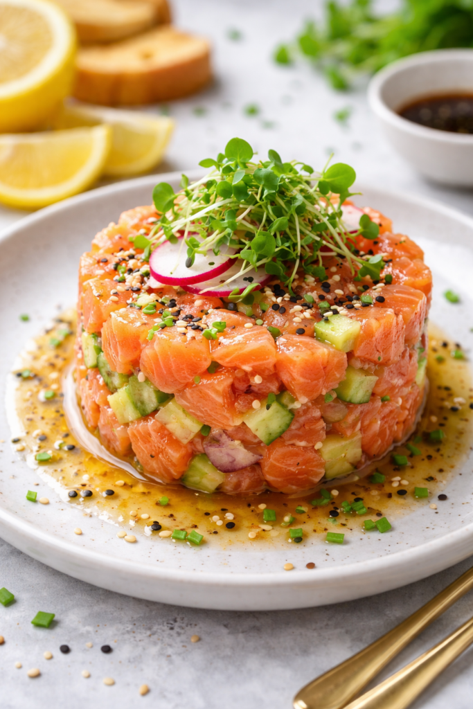 Aprende a preparar un tartar de salmón fresco con aguacate y cítricos. Una receta ligera, saludable y elegante, ideal para momentos de claridad y equilibrio.